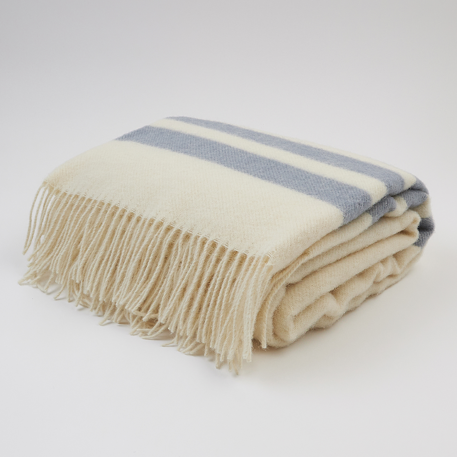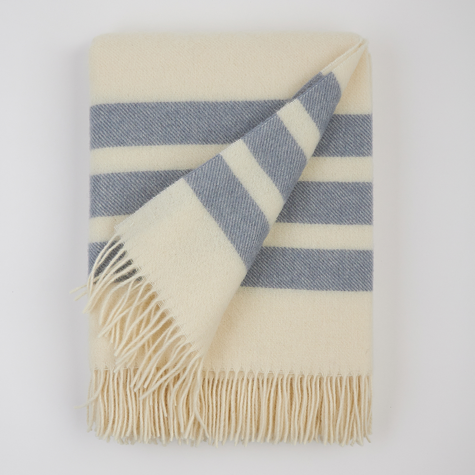 Koc wełniany - 100% wełna nowozelandzka - Dark Blue and Cream