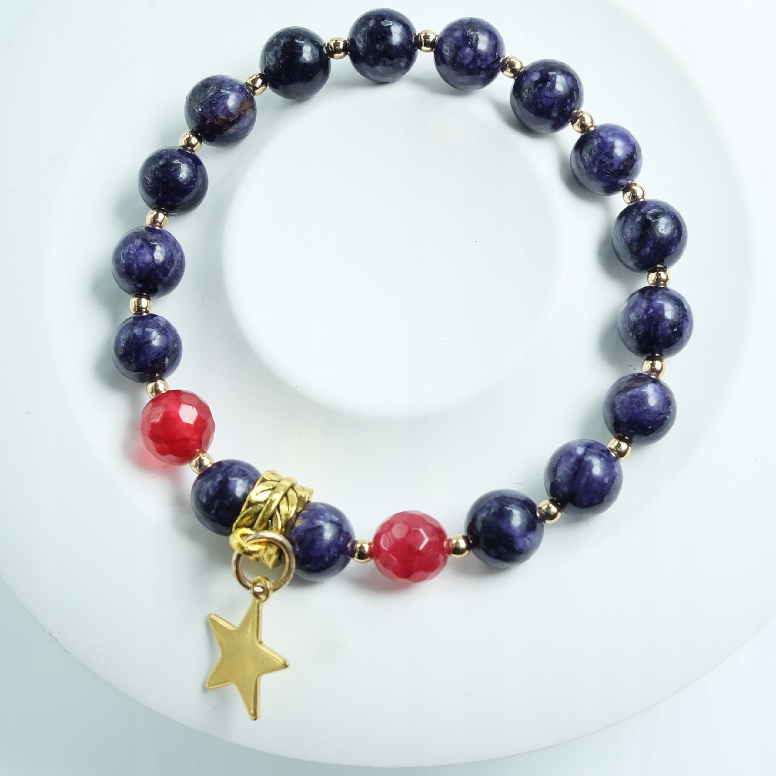 Bransoletka "Borówkowy Las" – Czaroit (Charoite) i Agat – Złota Gwiazdka