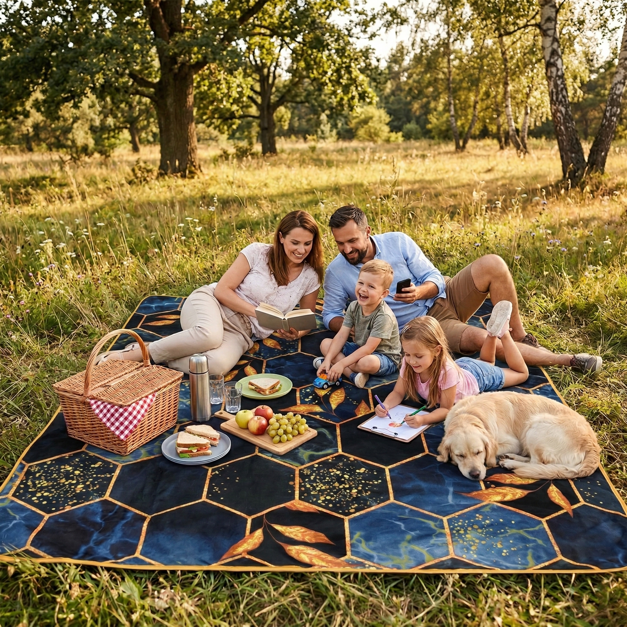 Zapewnij swojej rodzinie komfort podczas każdej przygody na świeżym powietrzu. Nasz duży koc piknikowy to połączenie stylowego designu z niezwykłą funkcjonalnością. Dzięki wymiarom 180x200 cm, bez problemu pomieści całą rodzinę, oferując mnóstwo miejsca do wspólnej zabawy i relaksu.