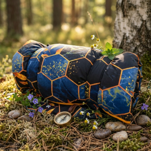 - Pełna izolacja (wnętrze): Środek koca wypełniony jest antyalergiczną włókniną silikonową. To ona sprawia, że koc jest miękki i sprężysty – skutecznie niweluje nierówności podłoża, jak kamyczki czy wystające gałązki.